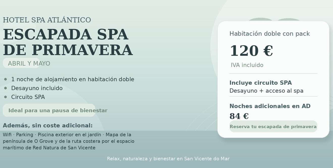 El Hotel Spa Atlántico es fruto del esfuerzo y la visión de Pepe e Isabel, que tras años dedicados a la hostelería en Suiza regresaron a Galicia con el sueño de abrir un pequeño hotel junto al mar. Eligieron San Vicente do Mar, en la península de O Grove, donde levantaron este establecimiento rodeado de jardines y naturaleza. Hoy, bajo la dirección de su hijo Jorge Olleros juntamente con su esposa Raquel, el hotel mantiene intacto su espíritu familiar: atención personalizada, cercanía y mejora constante. Compartimos el mismo espíritu familiar que hoy también representa Javier Olleros en el restaurante Culler de pau —a tan solo 4 km—, distinguido con 2 Estrellas Michelin y 1 Estrella Verde. Más de tres décadas después, seguimos haciendo lo que mejor sabemos: cuidar a cada huésped con profesionalidad y calidez.